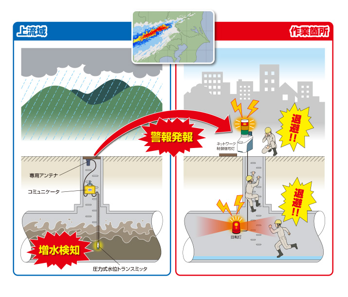 管内増水から作業員を守る。
