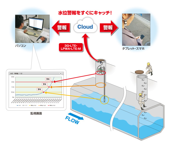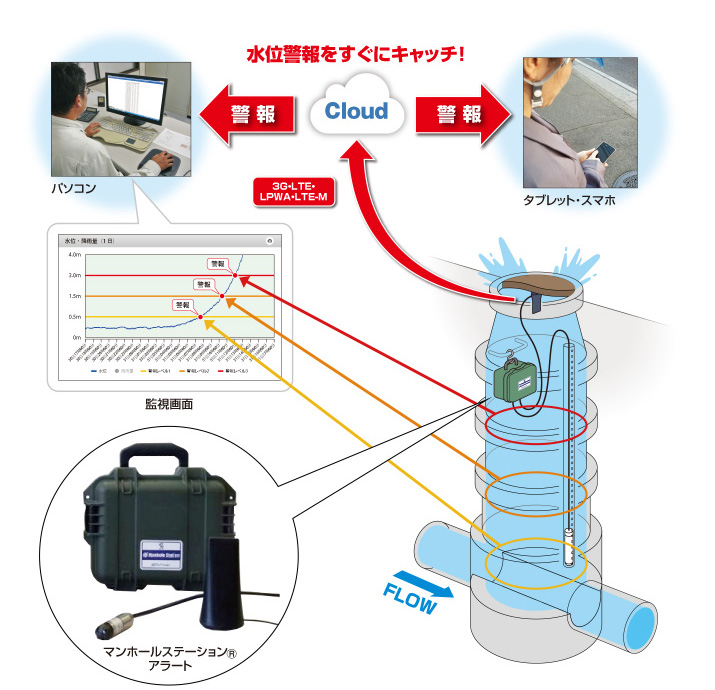 マンホール内水位を「見える化」します。
